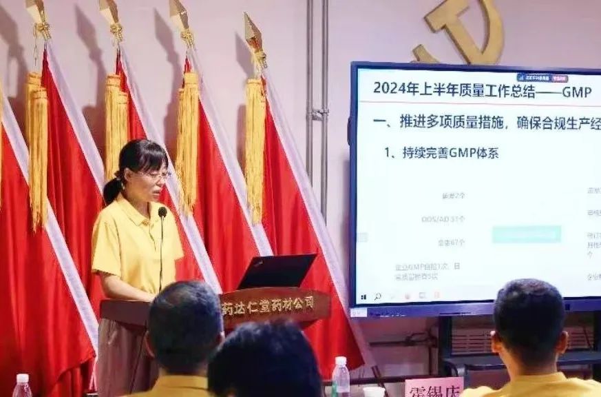 饮片厂(含亳州)质量副总经理于小华 主要在合规生产经营、加强质量风险管理、开展质量风险评估、完善产地趁鲜切片品种管理、紧盯中药饮片保质期、确保市场平稳过渡等内容进行汇报;