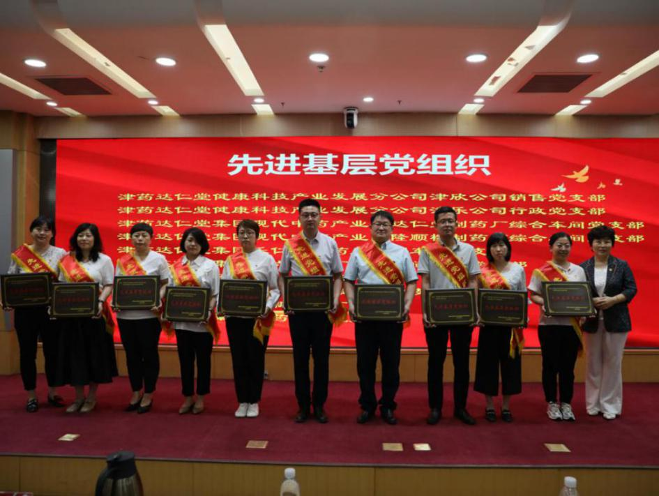 会议现场,津药达仁堂集团党委副书记、工会主席尚明杰同志宣读了表彰决定,授予廉政等30名同志“优秀共产党员”称号,授予石蕾等8名同志“优秀党务工作者”称号,授予津药达仁堂健康科技产业发展分公司津欣公司销售党支部等10个党组织“先进基层党组织”称号。津药达仁堂集团党委副书记、总经理王磊等公司领导分别为受表彰的个人和集体颁发证书和奖牌。